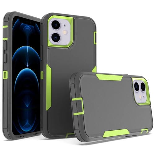 Funda para teléfono iPhone 12 2 en 1 Magnética PC + TPU (Gris + Verde Fluorescente)