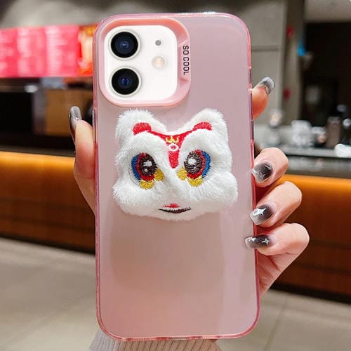 Funda para iPhone 12 Felpa Danza del León Año Nuevo (León Blanco Rosado)