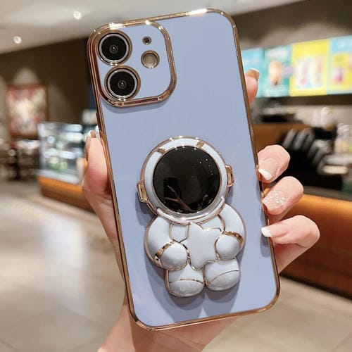 Estuche para teléfono Embrace Stars iPhone 12 con soporte para astronauta galvanizado (Azul)
