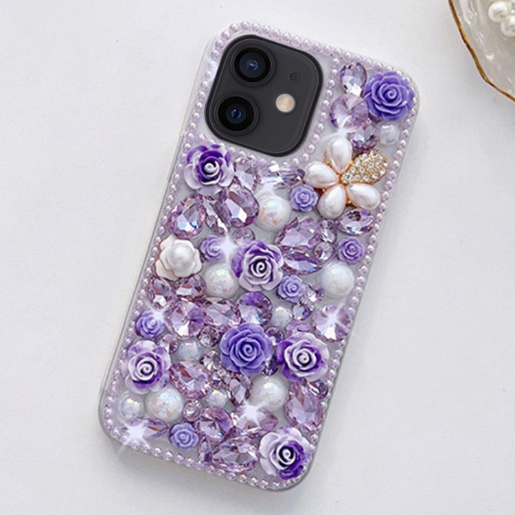 Estuche para Teléfono iPhone 12 con PC Diamantes Engastados a Mano (Púrpura)