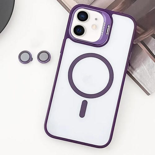 Estuche para Teléfono iPhone 12 TPU Híbrido Acrílico con Soporte Magsafe y Película para Lentes (Púrpura)