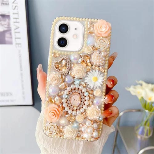 For iPhone 12 Rose Shape Diamond Inlaid Phone Case (Yellow)