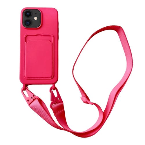 Funda para Teléfono iPhone 12 Silicona Líquida Ranura para Tarjeta y Cordón (Rojo Rosa)