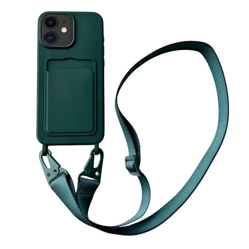 Funda para Teléfono iPhone 12 Silicona Líquida Ranura para Tarjeta y Cordón (Verde Oscuro)