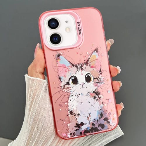 Funda para Teléfono iPhone 12 Imd Animal Graffiti TPU + PC Doble Cara (Gato Elegante)