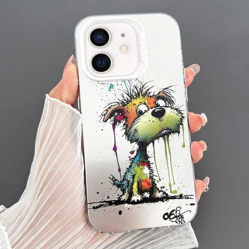Funda para Teléfono iPhone 12 Imd Animal Graffiti TPU y PC Doble Cara (Perro Naranja Verde)