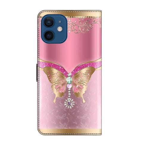 Funda Protectora de Cuero iPhone 12 Mini 13 Mini Crystal 3D a Prueba de Golpes (Mariposa Inferior Rosa)