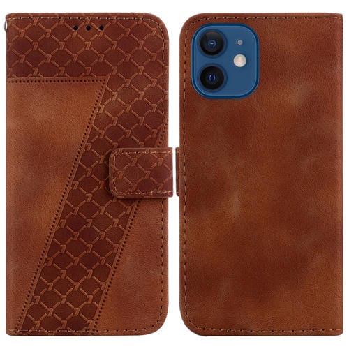 Funda para iPhone 12 Mini 7 en Forma de Caja de Teléfono de Cuero en Relieve (Marrón)