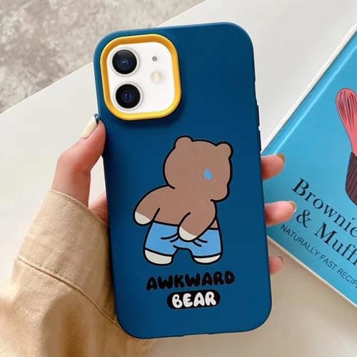 Estuche híbrido para iPhone 12 Mini Awkward Bear PC y TPU (Azul Real)