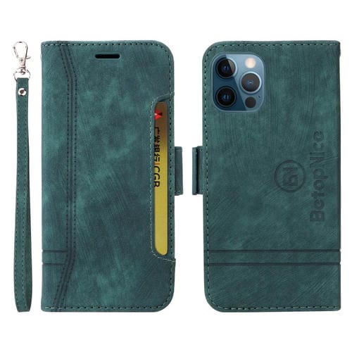 Funda de Cuero Betopnice para iPhone 12 Mini con Hebilla de Doble Cara (Verde)