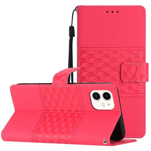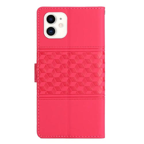 Caja de Teléfono iPhone 12 Mini Cuero Sensación de Piel En Relieve con Cordón (Rojo)