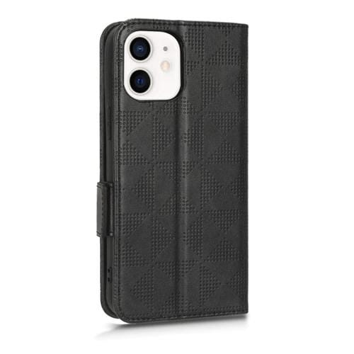 Caja de teléfono iPhone 12 Mini Cuero Triángulo Simétrico (Negro)