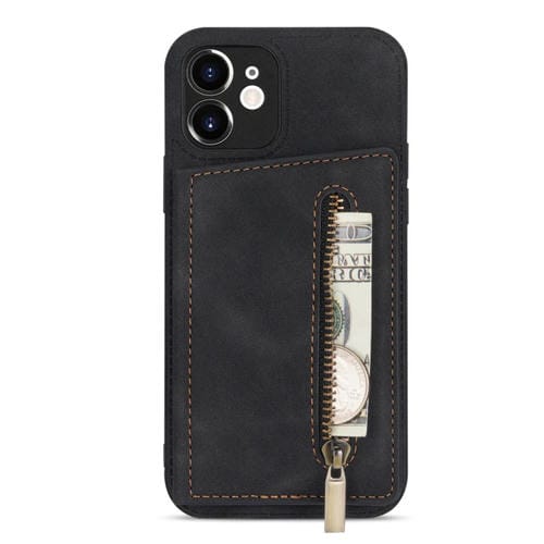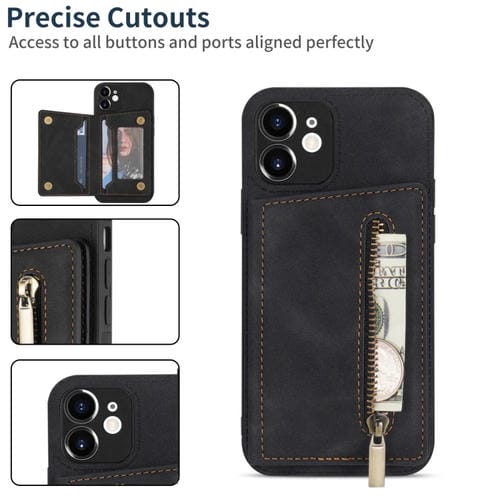 Funda para teléfono iPhone 12 Mini con Cremallera y tarjetero (Negro)