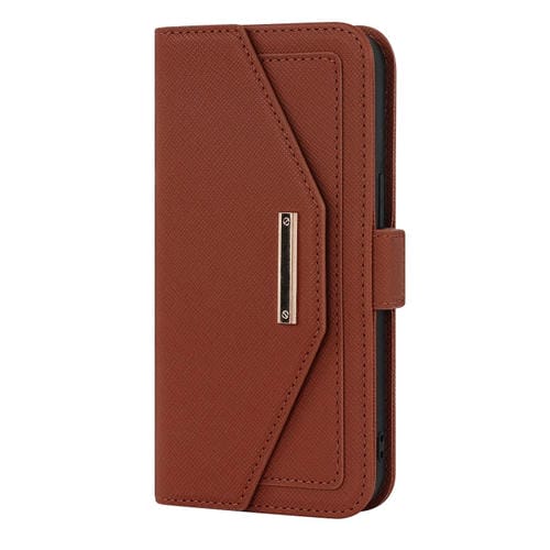 Funda para iPhone 12 Mini Cross Texture Lanyard de Cuero para Teléfono (Marrón)