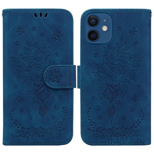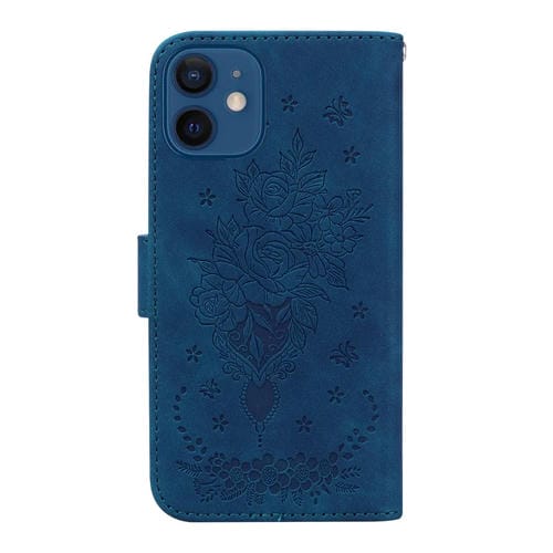 Estuche para Teléfono iPhone 12 Mini Cuero En Relieve Butterfly Rose (Azul)