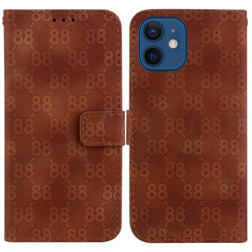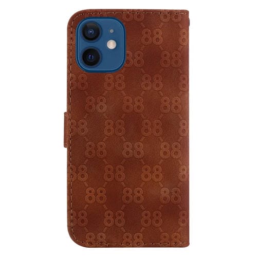 Estuche para Teléfono iPhone 12 Mini Cuero En Relieve Doble Forma de 8 (Marrón)