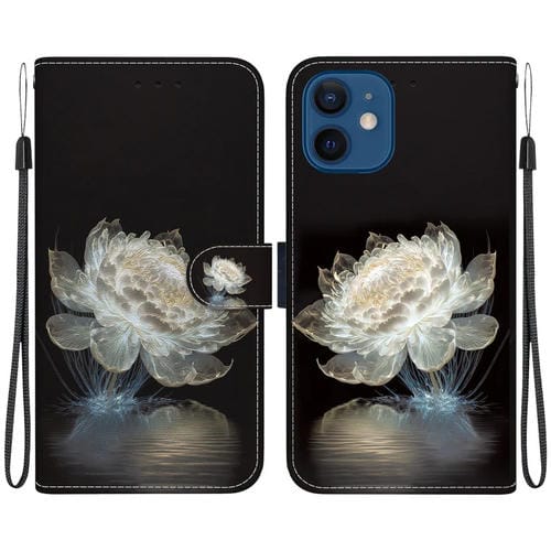 Funda para teléfono iPhone 12 Mini Cuero Dibujo Coloreado Textura de Cristal (Peonía de Cristal)
