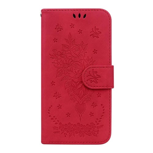 Funda de Teléfono para iPhone 12 Mini Cuero En Relieve con Mariposa Rosa (Rojo)