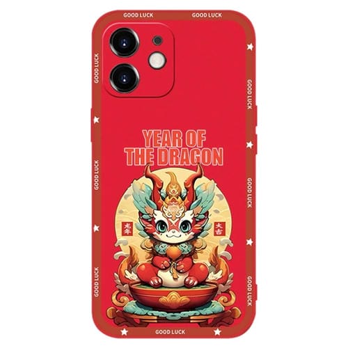 Funda para Teléfono iPhone 12 Mini Silicona Prueba de Golpes (Roja) (Año del Dragón)