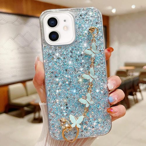 Funda para Teléfono iPhone 12 Mini TPU Epoxi Cadena Mariposa Lentejuelas (Azul)