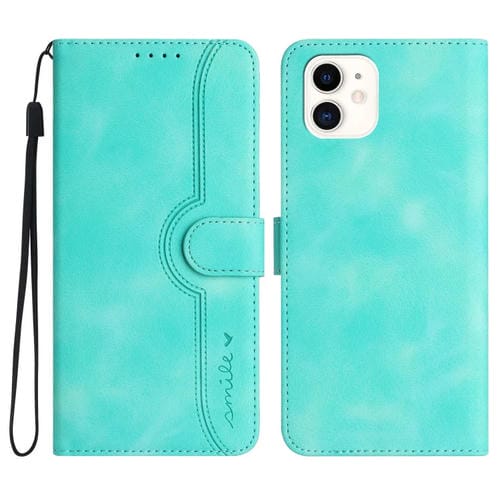Funda para iPhone 12 Mini Skin Feel con patrón de corazón de cuero (Azul Claro)