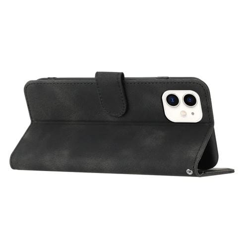 Funda para iPhone 12 Mini Skin Feel Leather con Patrón de Corazones (Negro)