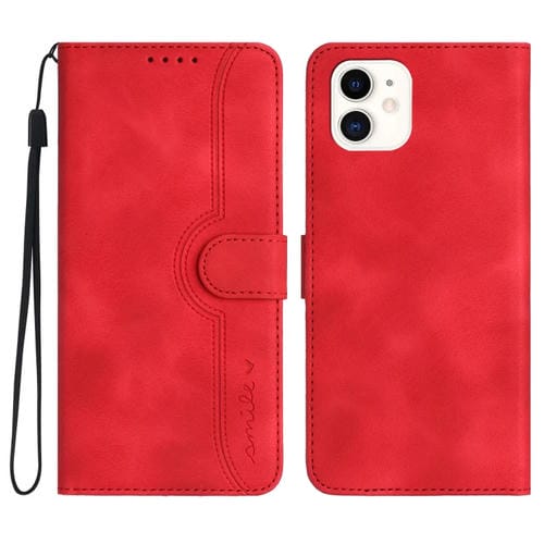 Funda para iPhone 12 Mini Skin Feel Leather con patrón de corazones (Rojo)