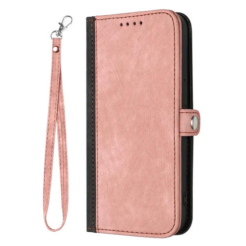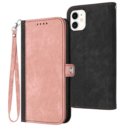Funda de Cuero para Teléfono iPhone 12 Mini Hebilla Lateral Doble Pliegue Correa de Mano (Rosa)