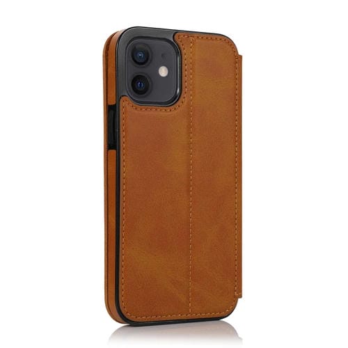 Funda de Teléfono iPhone 12 Mini Knight Cuero con Succión Magnética (Caqui)