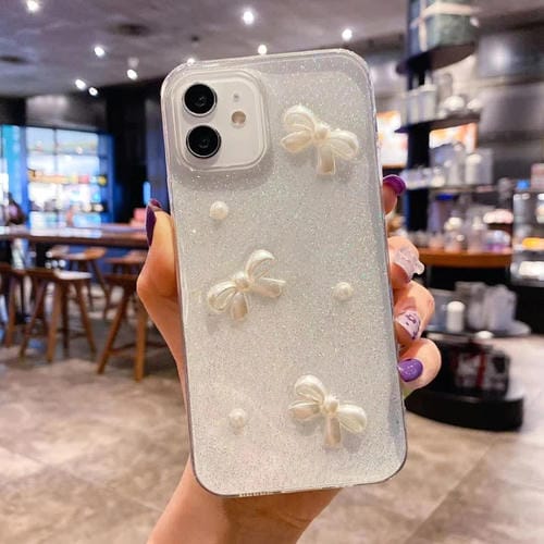 Funda para iPhone 12 Mini Pearl Bow Glitter Epoxy TPU Phone Case (Tres Nudos)