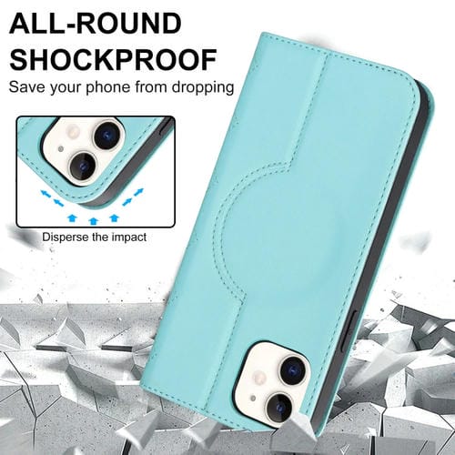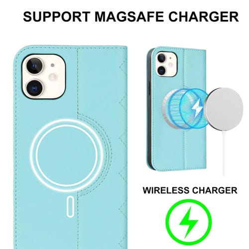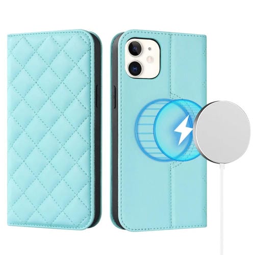 Funda para iPhone 12 Mini Rhombic Magsafe Rfid Cuero Antirrobo (Azul Cielo)