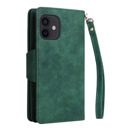 Funda de Cuero para Teléfono iPhone 12 Mini Rivet Buckle 9 Cards Tres Pliegues (Verde)