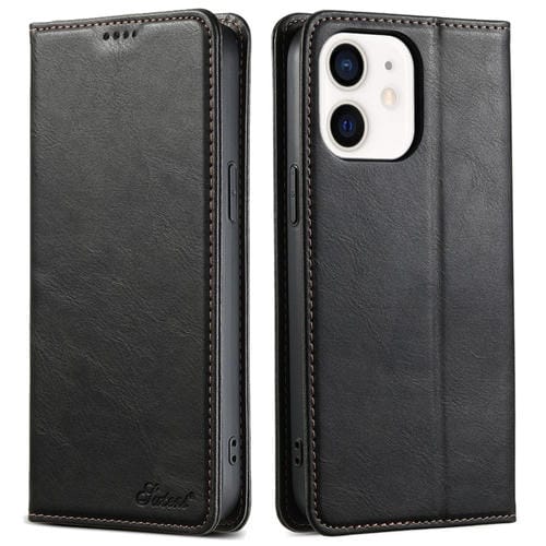 Funda para iPhone 12 Mini Suteni J02 Cuero con Billetera Cera de Aceite (Negro)