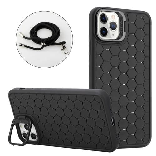 Funda para teléfono iPhone 12 Pro Honeycomb Radiating Holder TPU con Cordón (Negro)