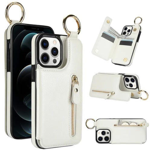 Funda para Teléfono iPhone 12 Pro Litchi Texture Cremallera Doble Hebilla con Bolsa para Tarjetas (Blanco)