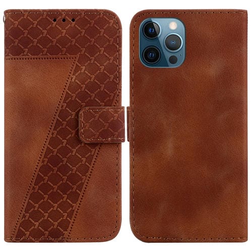 Funda de Teléfono para iPhone 12 Pro Max 7 En Forma de Cuero En Relieve (Marrón)