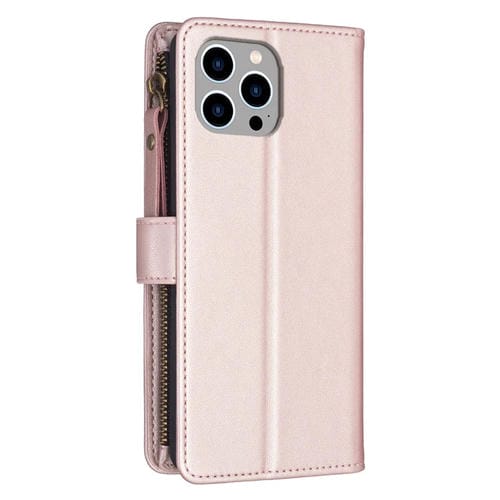 Funda para iPhone 12 Pro Max Monedero de Cuero con 9 Ranuras para Tarjetas y Cremallera (Oro Rosa)