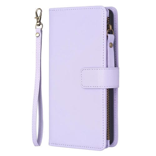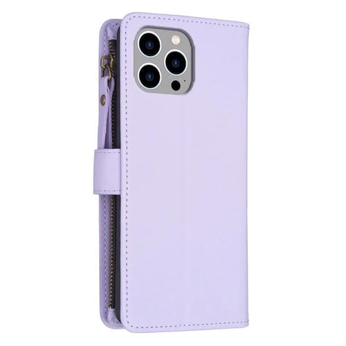 Funda para iPhone 12 Pro Max Cuero con 9 Ranuras para Tarjetas y Cremallera (Púrpura Claro)