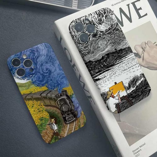 Funda para iPhone 12 Pro Max PC Patrón de Pintura al Óleo Agujero Preciso (Lavado de Tinta)