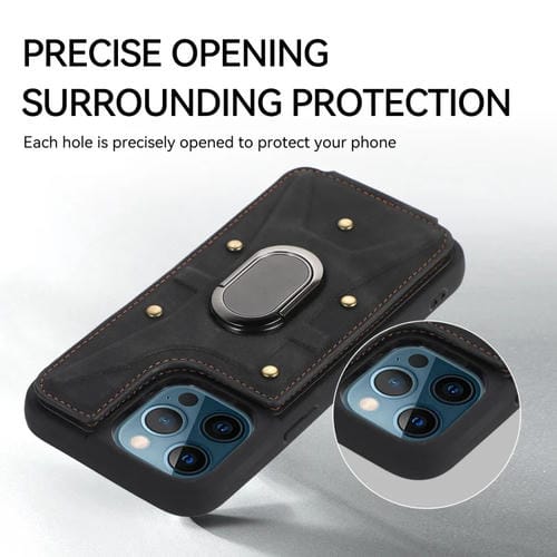 Funda para iPhone 12 Pro Max Armor Ring Wallet Back Cover (Negro)