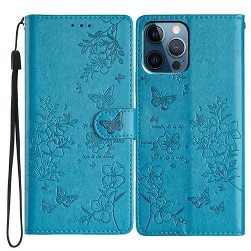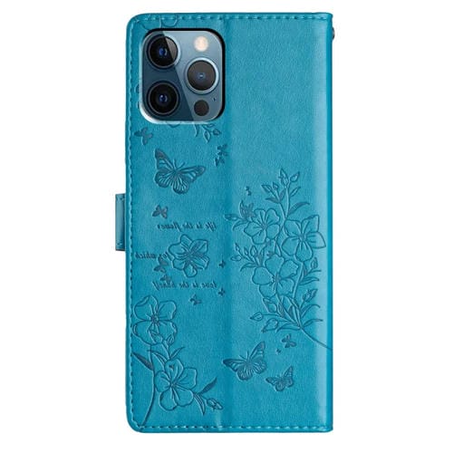 For iPhone 12 Pro Max Butterfly Love Flower Embossed Leather Phone Case(Blue)