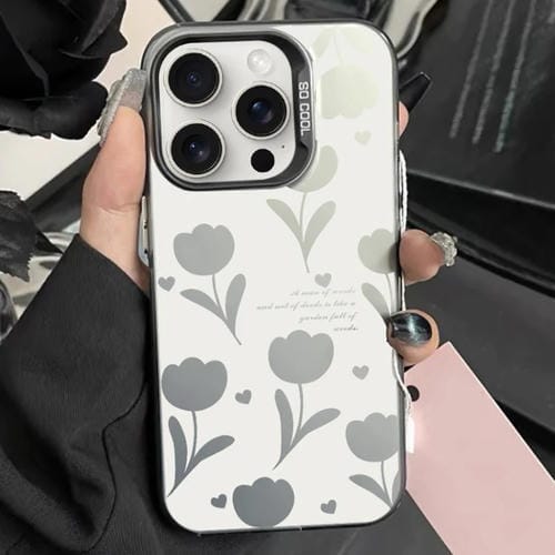 Caja de teléfono híbrida TPU PC para iPhone 12 Pro Max con pintura plateada (Tulipanes huecos negros)