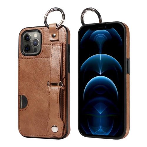 Caja del Teléfono para iPhone 12 Pro Max con Anillo y Ranura para Tarjeta Textura de Pantorrilla (Marrón)