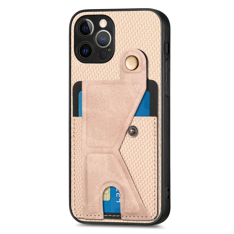 Funda para teléfono iPhone 12 Pro Max Carbon Fiber Wallet Flip Card con Soporte en forma de K (Caqui)