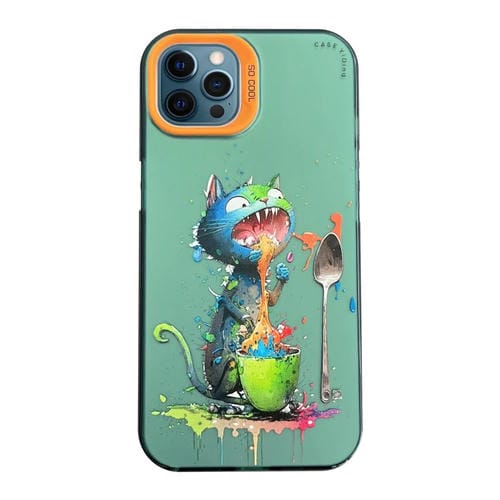 Funda para teléfono iPhone 12 Pro Max Cartoon Animal Graffiti PC y TPU (Gato Azul)