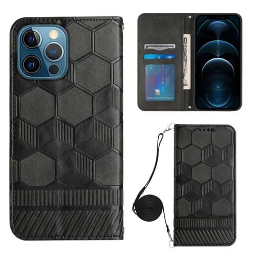 For iPhone 12 Pro Max Crossbody Football Texture Magnetic PU Phone Case(Black)