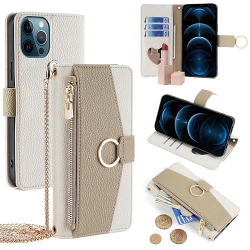 Funda para iPhone 12 Pro Max Crossbody de Cuero con Textura Litchi (Blanco)
