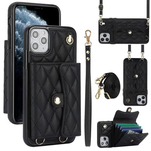 Funda para iPhone 12 Pro Max Crossbody Rhombic Horizontal Wallet de Cuero (Negro)