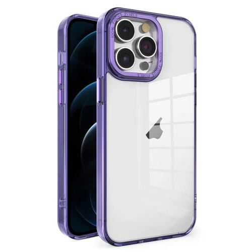 Funda para iPhone 12 Pro Max Crystal TPU + PC con Marco de Lente Galvanizada (Púrpura)
