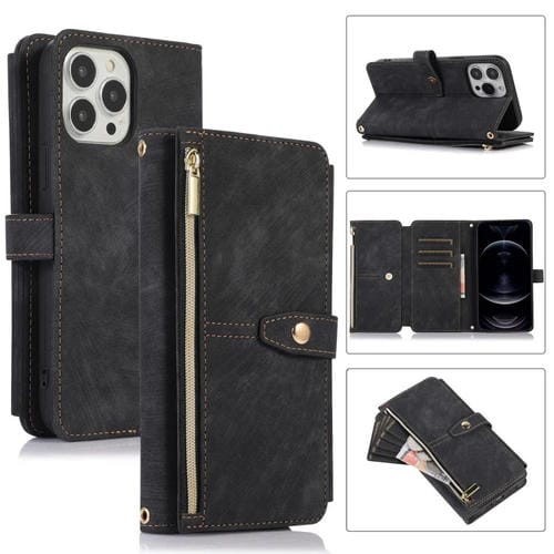 Funda para iPhone 12 Pro Max Dream 9-Card Wallet Zipper Bag de Cuero para Teléfono (Negro)